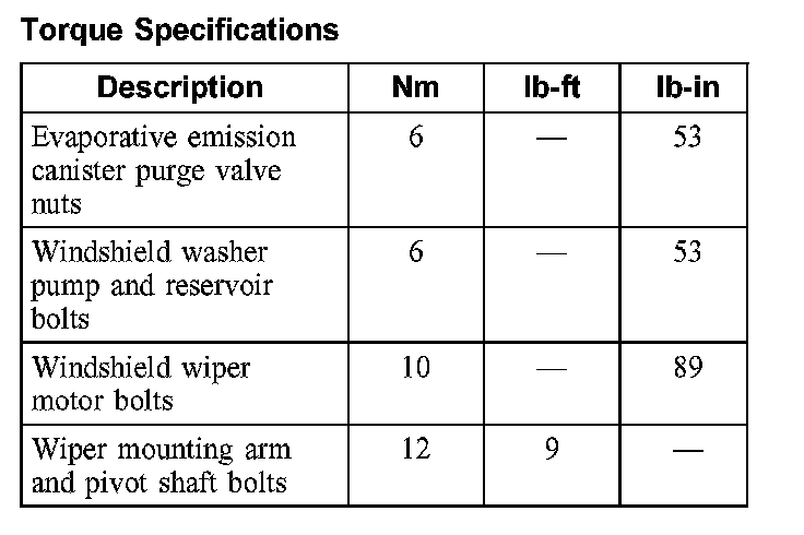 Torque Specifications:
