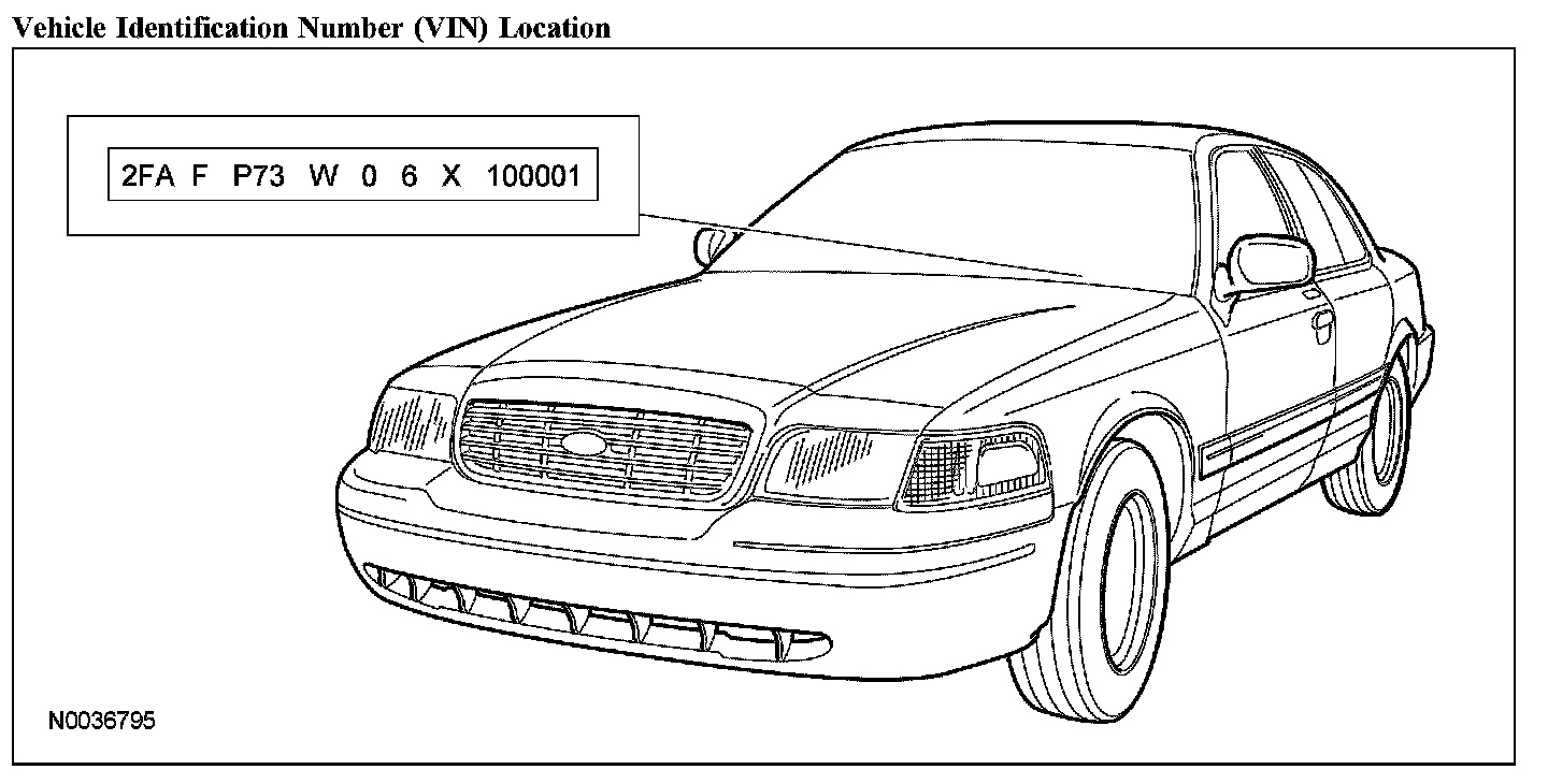 The vehicle identification number (VIN) is a 17-digit combination of letters and numbers. The VIN is stamped on a metal tab riveted to the instrument panel, top upper left of the dash. The VIN number is also found on the vehicle certification (VC) label.