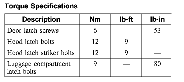 Torque Specifications: