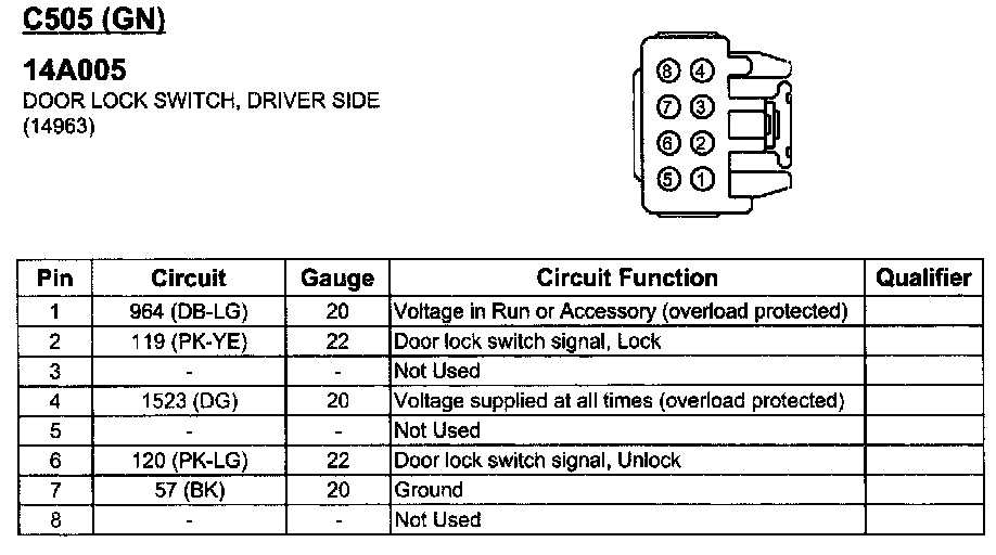 Door Lock Switch, Driver Side