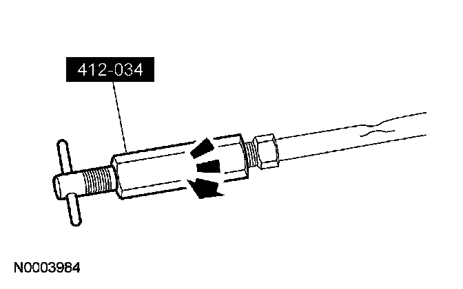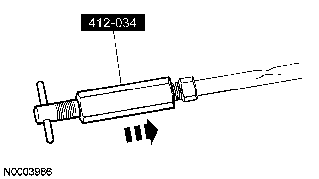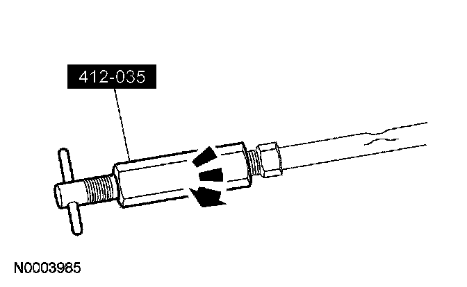 4. If the evaporator core orifice is intact, engage the special tool. Hold the T-handle stationary while rotating the tool body to remove the evaporator core orifice.
