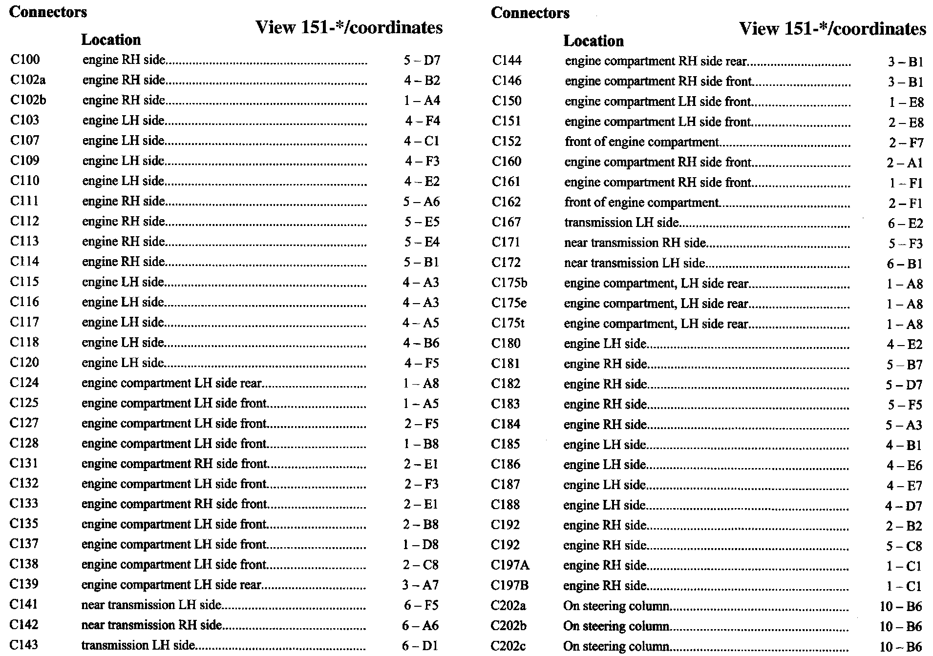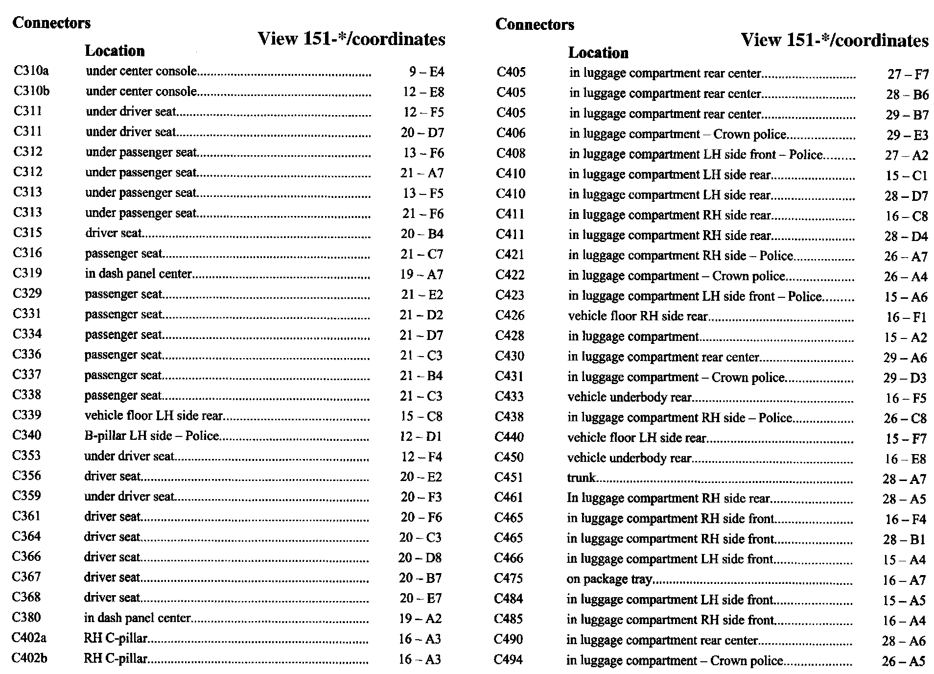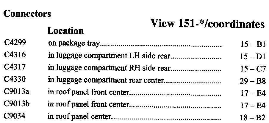 PLEASE NOTE: If a link on the Connector Location Index to a View is not provided, that means that the Connector and/or View in question does NOT apply to the vehicle model selected.