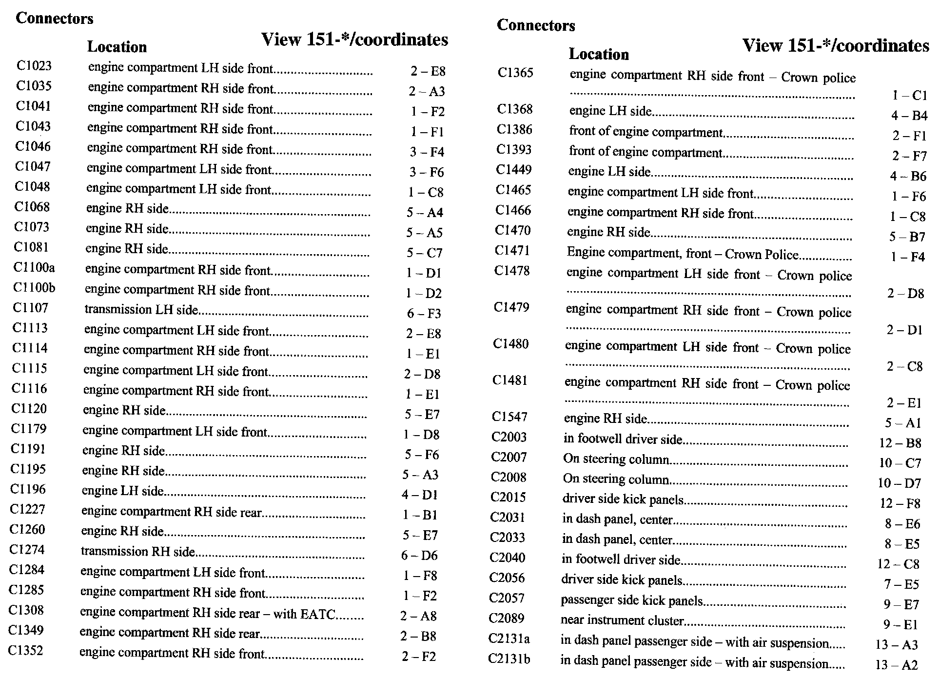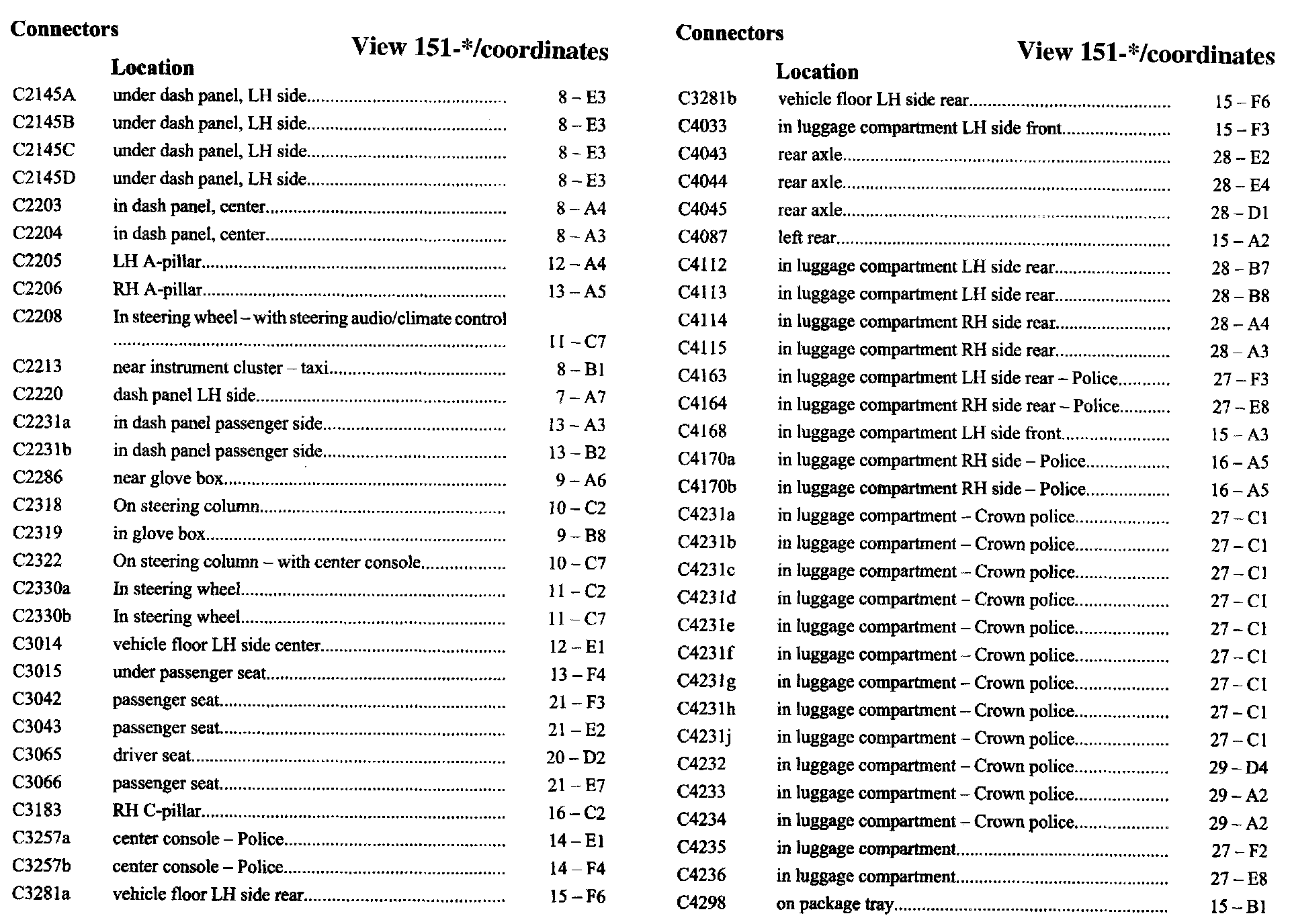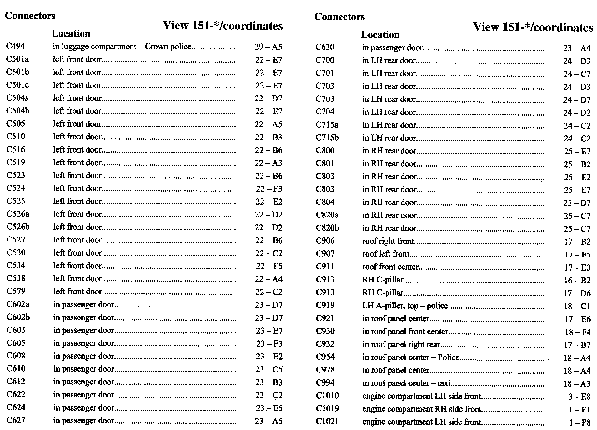 PLEASE NOTE: If a link on the Connector Location Index to a View is not provided, that means that the Connector and/or View in question does NOT apply to the vehicle model selected.