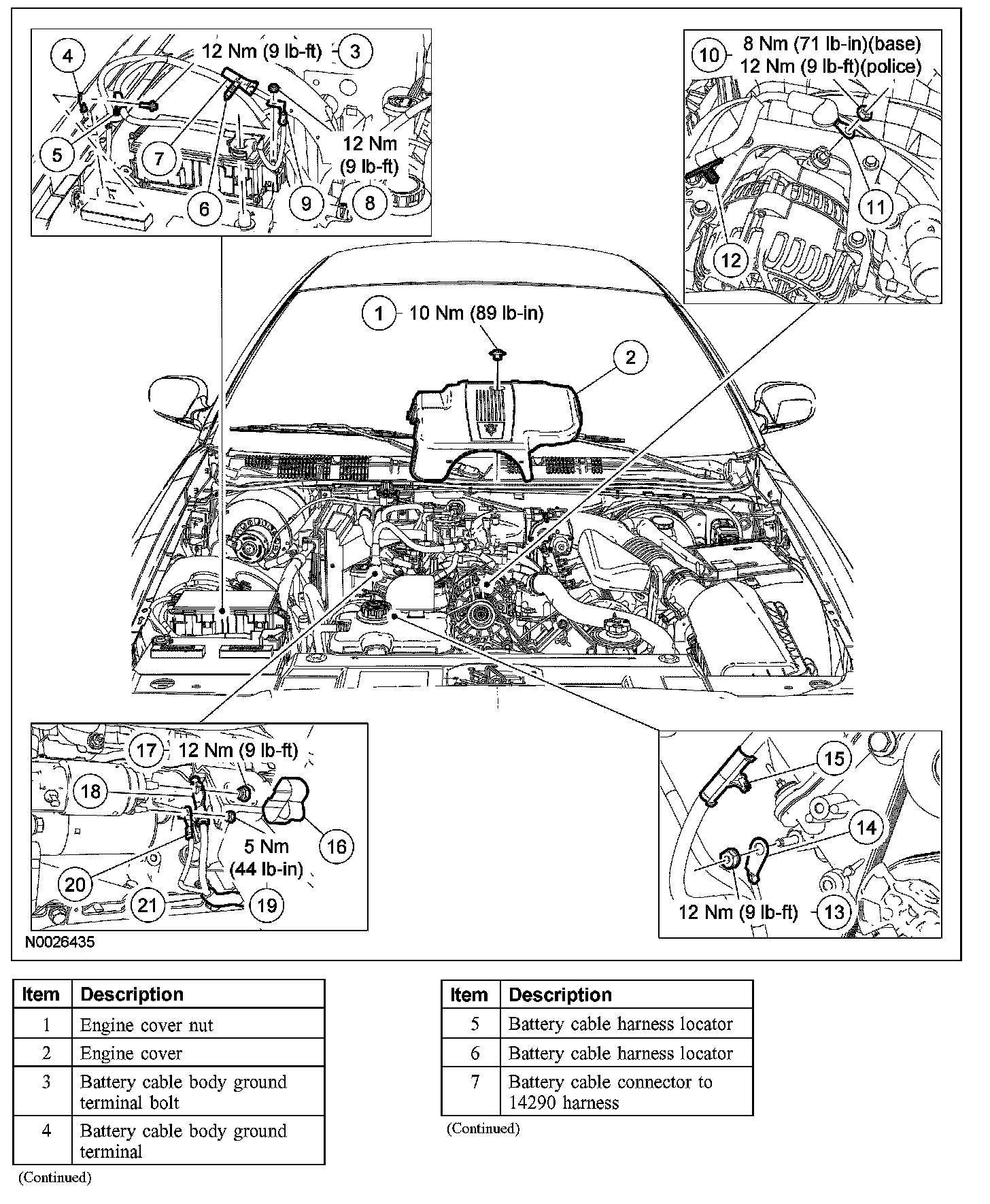 - To install, tighten to 12 Nm (9 lb-ft) (police interceptor).