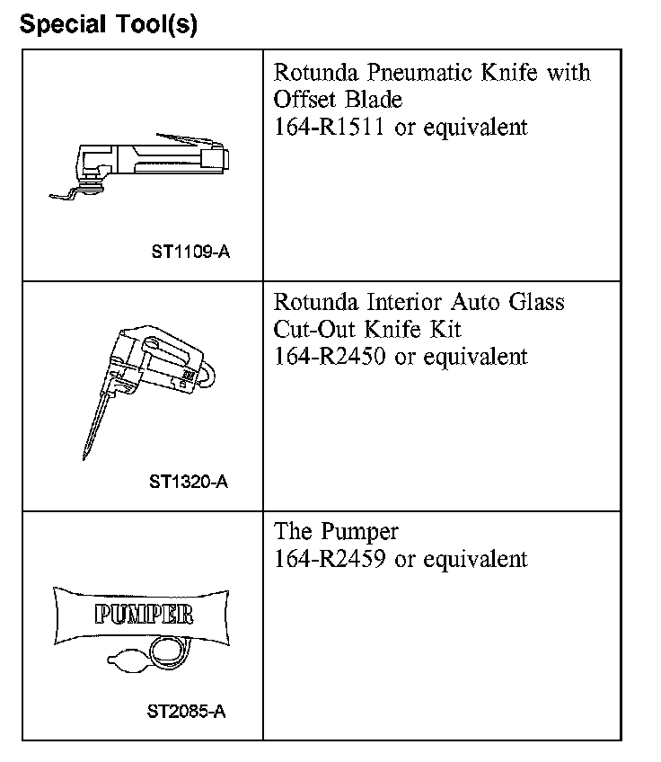 WARNING: To prevent glass splinters from entering the eyes or cutting the hands, wear safety glasses and heavy gloves when cutting the glass from the vehicle. Failure to follow these instructions may result in personal injury.