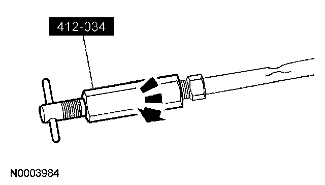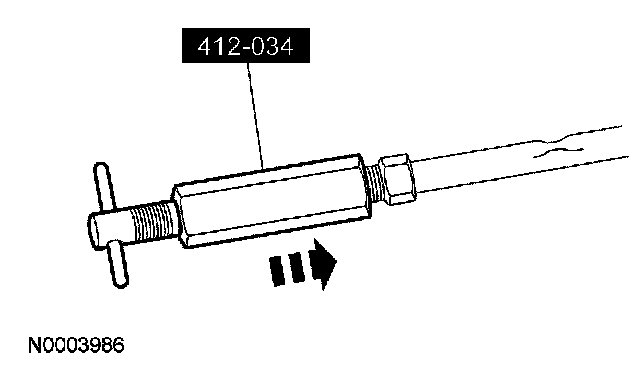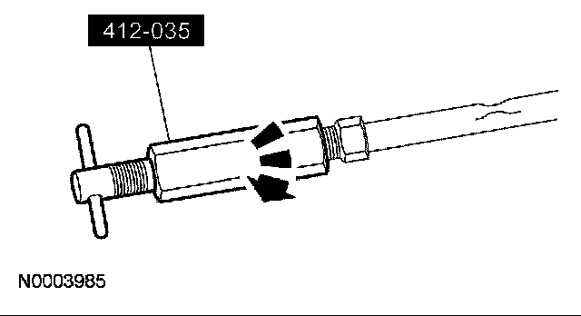 3. If the evaporator core orifice is intact, engage the special tool. Hold the T-handle stationary while rotating the tool body to remove the evaporator core orifice.