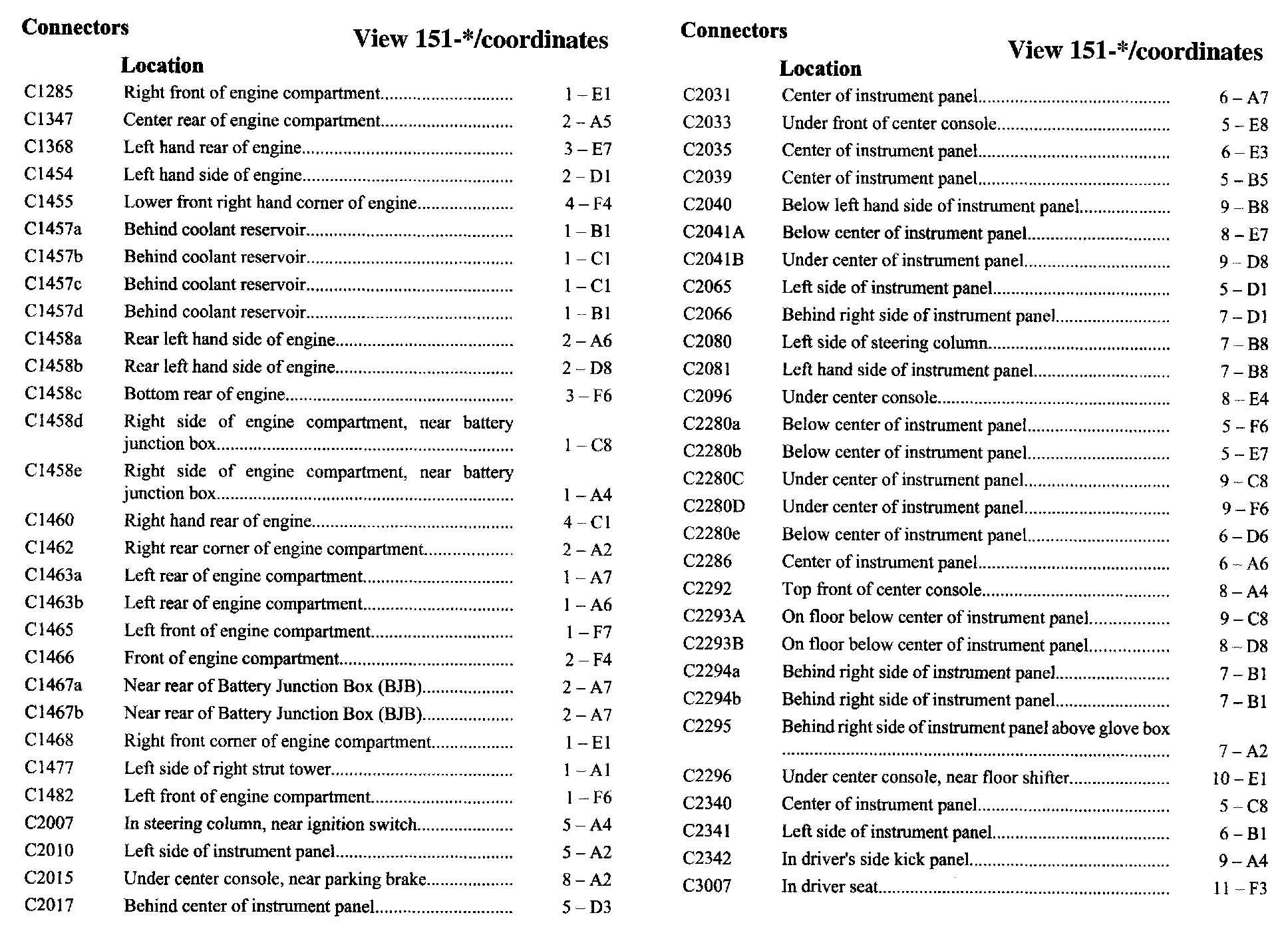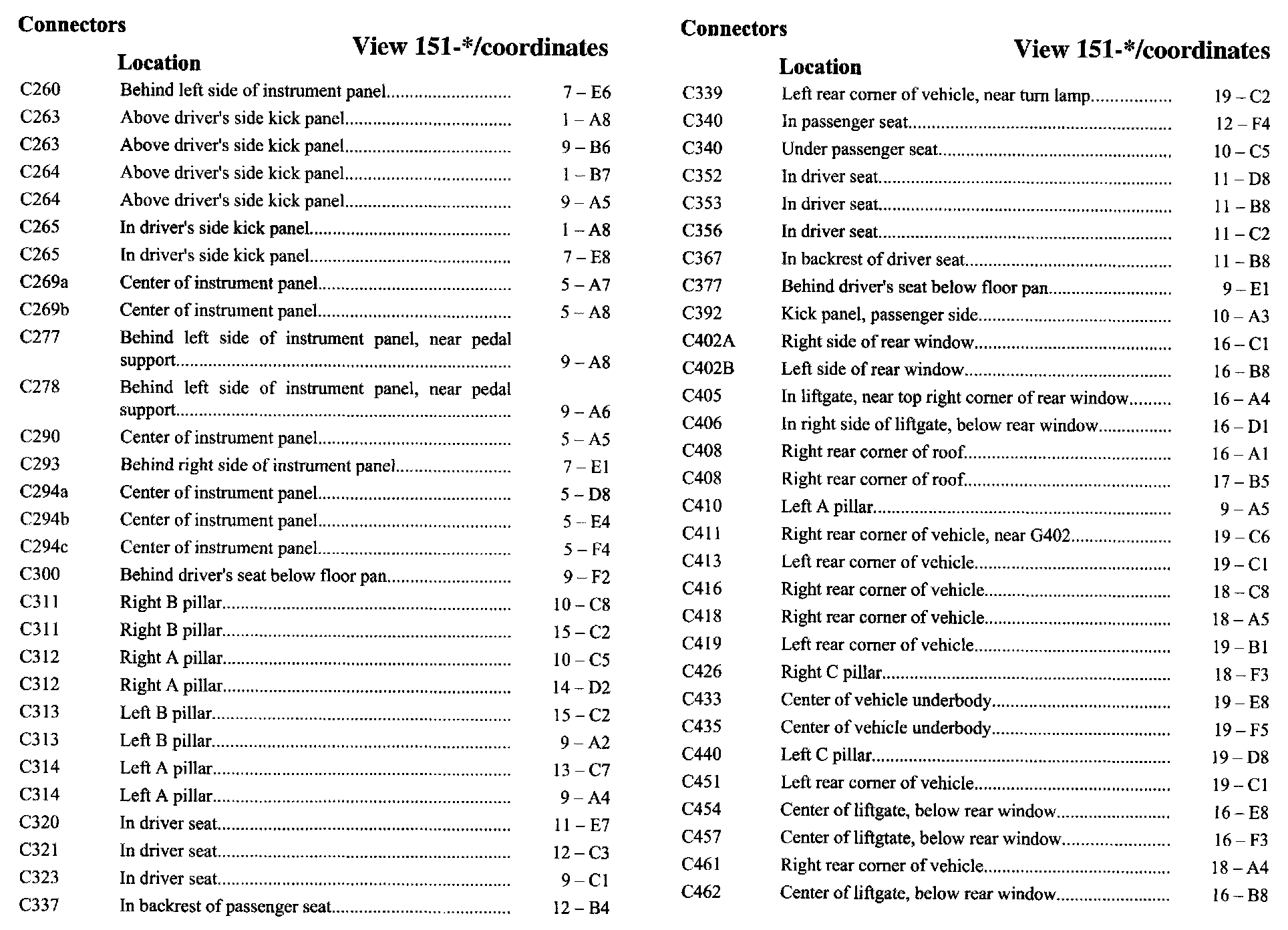 PLEASE NOTE: If a link on the Connector Location Index to a View is not provided, that means that the Connector and/or View in question does NOT apply to the vehicle model selected.