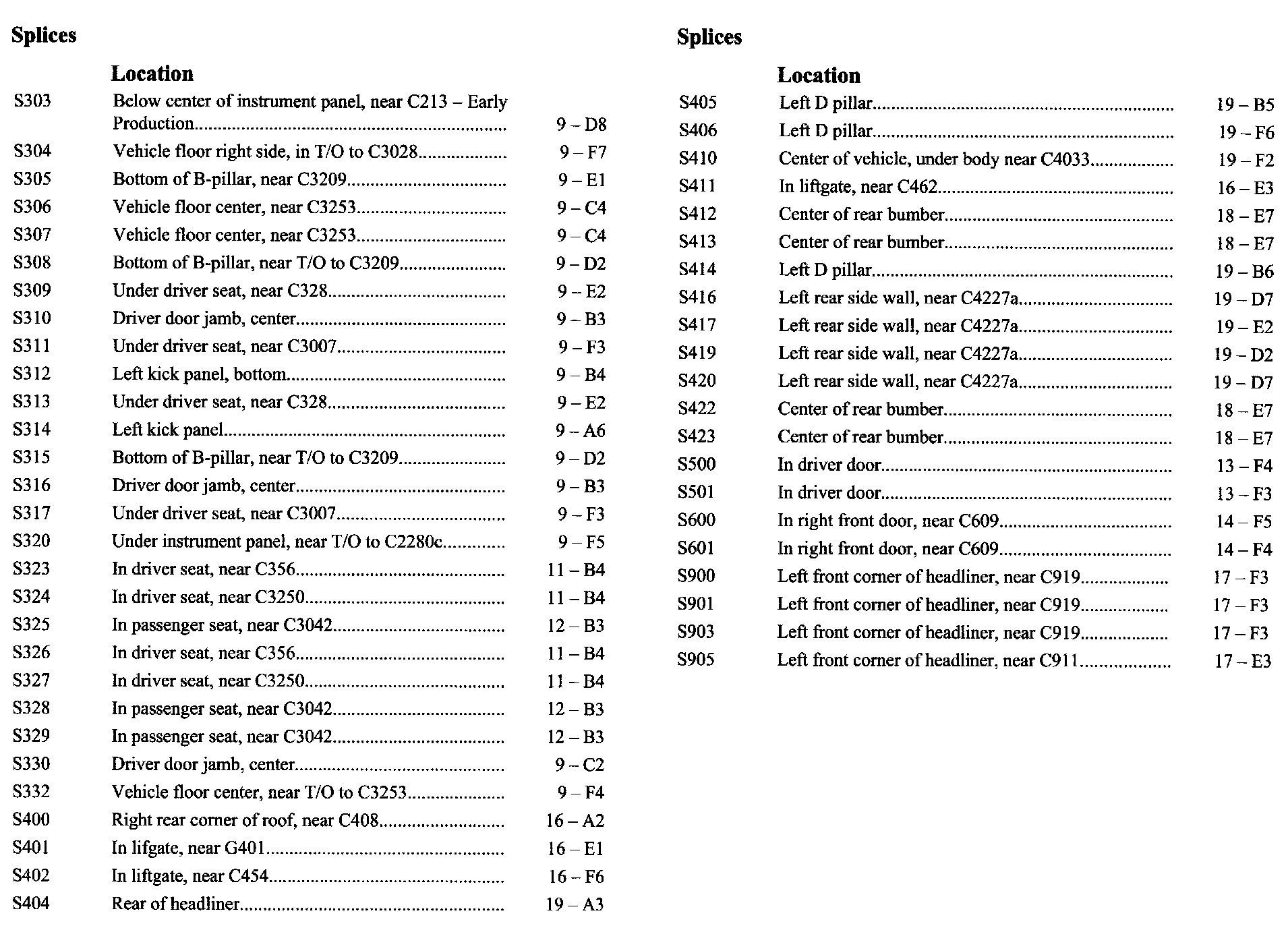 If a link on the Splices Location Index to a View is not provided, that means that the Splices and/or View in question does NOT apply to the vehicle model selected.