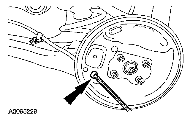 3. Compress the parking brake cable conduit locking tabs and pull the parking brake cable assembly through the backing plate.