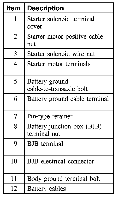 9. Disconnect the retainers fastening the battery cables to the battery tray.
