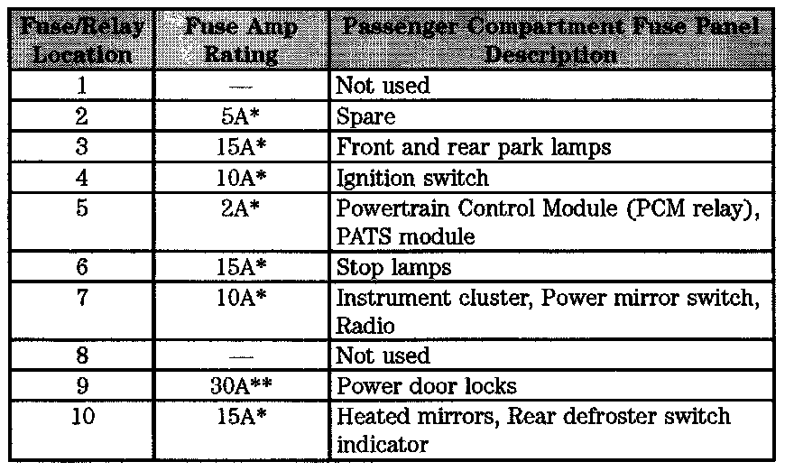 Passenger Compartment Fuse Panel