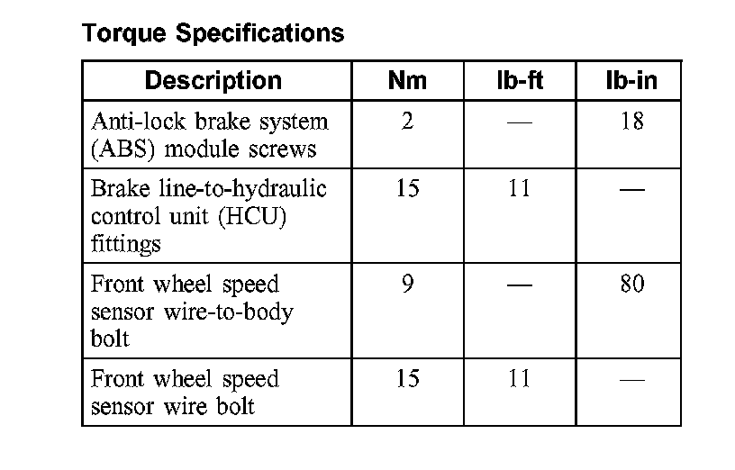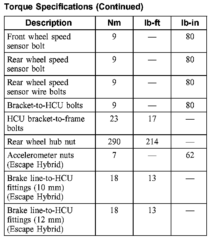 Torque Specifications: