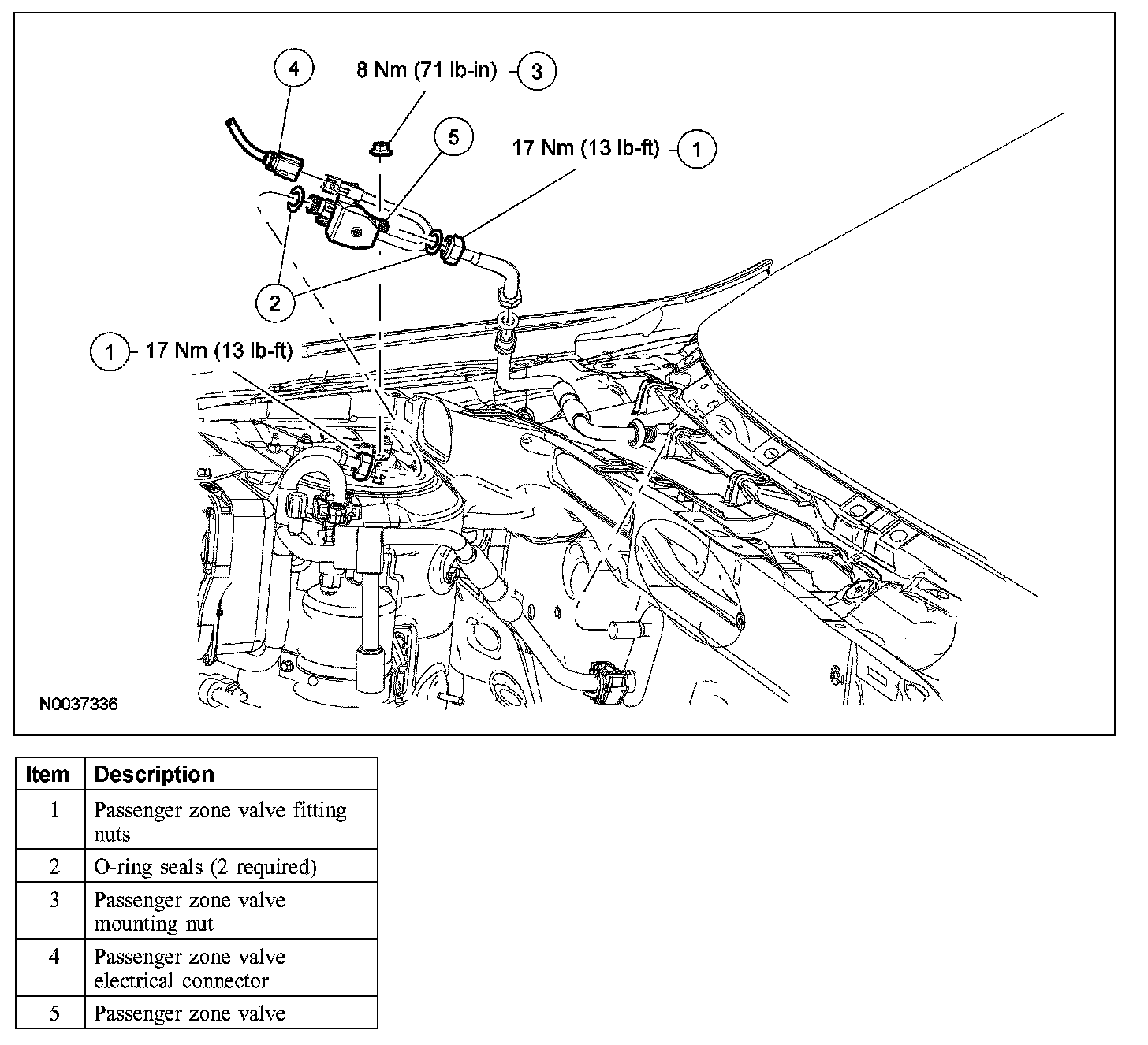 2. Loosen the nuts and disconnect the passenger zone valve line fittings.