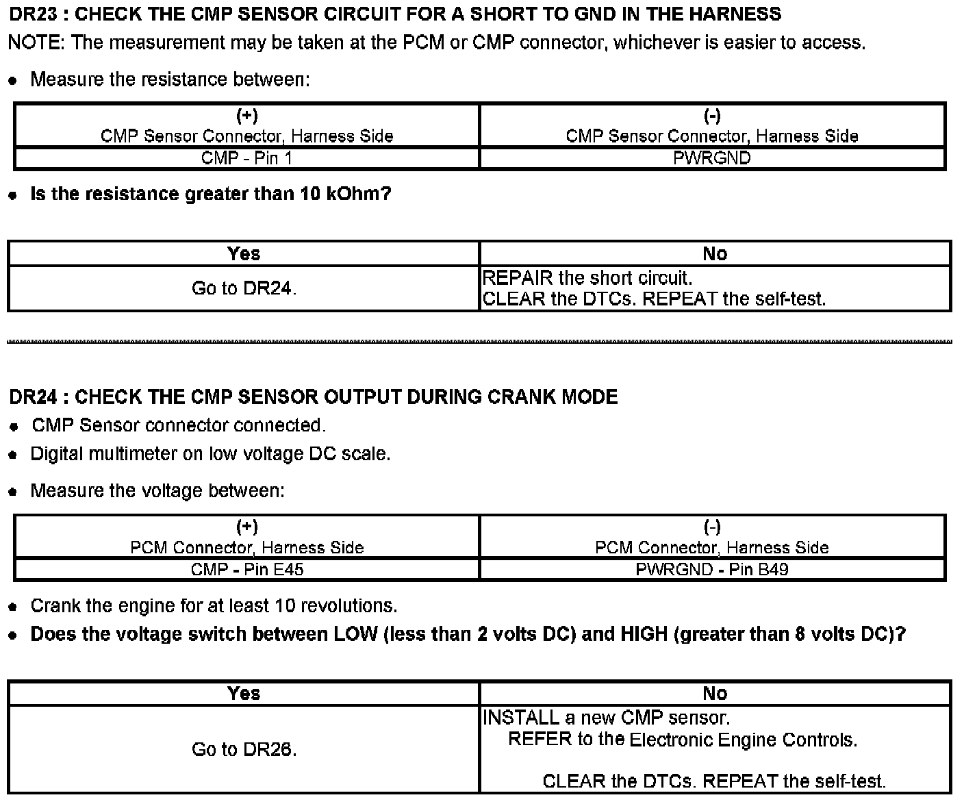 PINPOINT TEST DR: CAMSHAFT POSITION (CMP) SENSOR