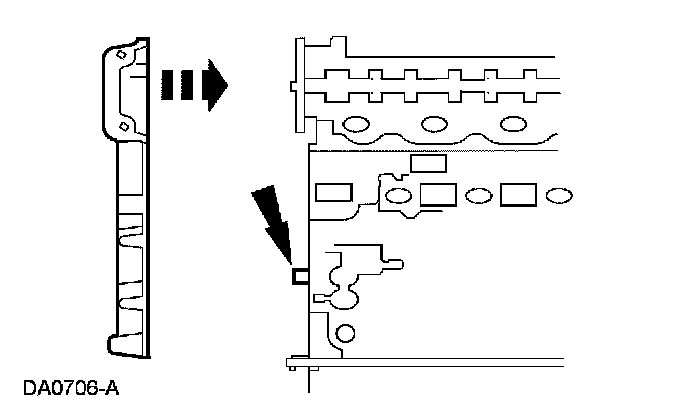 42. NOTE: The LH timing chain tensioner arm has a bump near the dowel hole for identification.