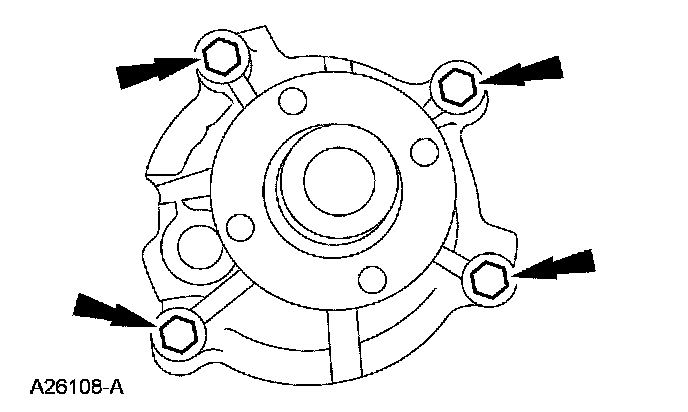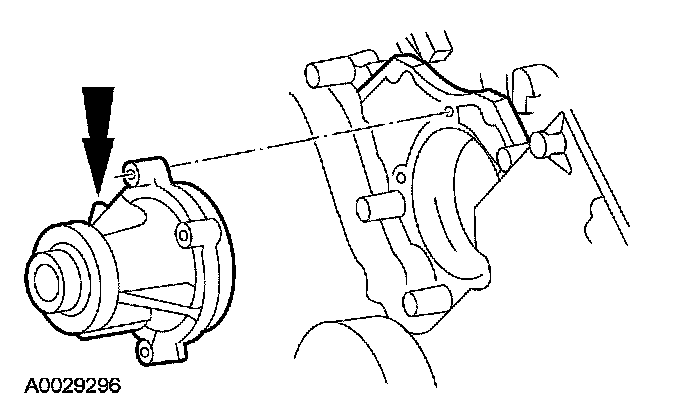 56. CAUTION: Do not rotate the coolant pump housing once the coolant pump has been positioned in the cylinder block. Damage to the O-ring seal will occur.