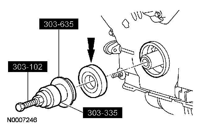 59. Using the special tools, install a new crankshaft front seal into the engine front cover.