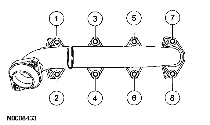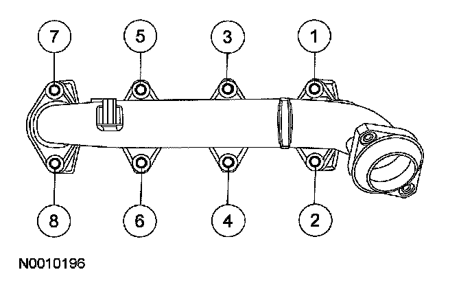 69. Position a new gasket, the RH exhaust manifold and tighten the 8 nuts in the sequence shown.