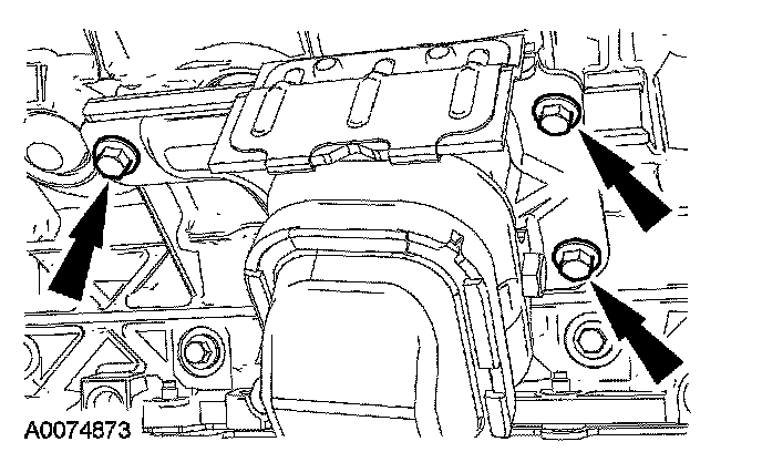 70. Install the RH engine support insulator and the 3 bolts.