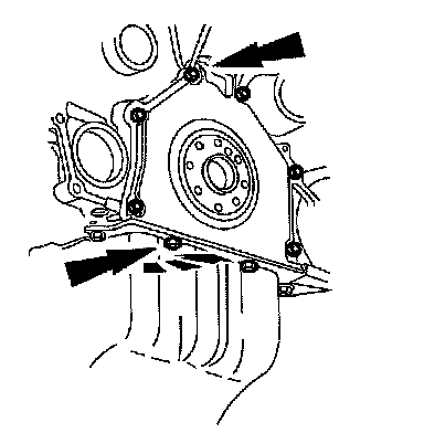 4. Remove the 8 bolts and the crankshaft rear seal retainer plate.