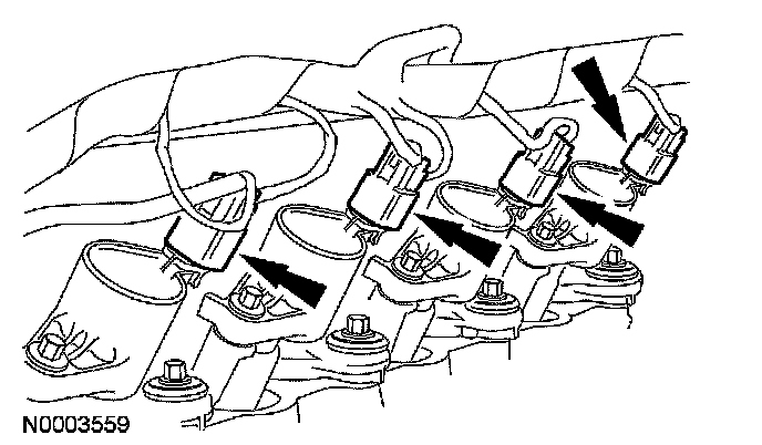 12. Disconnect the 4 RH ignition coil electrical connectors.