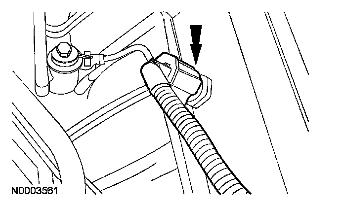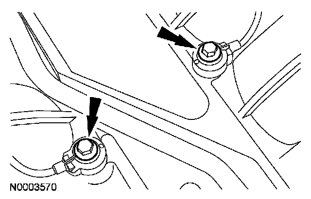 14. Disconnect the 2 engine wiring harness retainers from the LH valve cover studs.