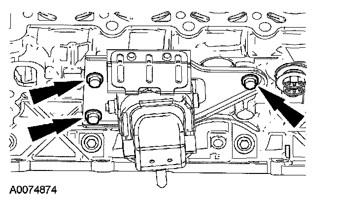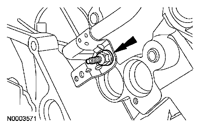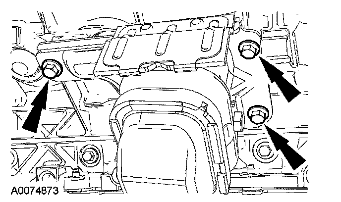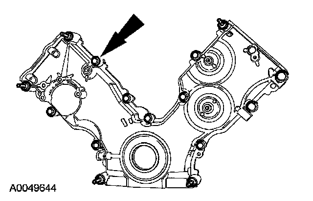 48. CAUTION: If one or both of the tensioner mounting bolts are loosened or removed, the tensioner-sealing bead must be inspected for seal integrity. If cracks, tears, separation from the tensioner body or permanent compression of the seal bead is observed, install a new tensioner.