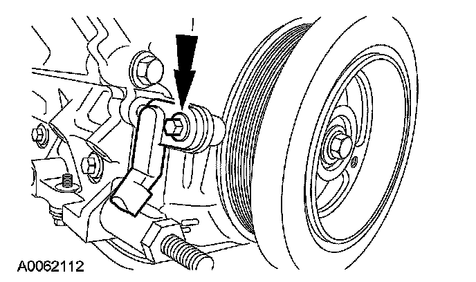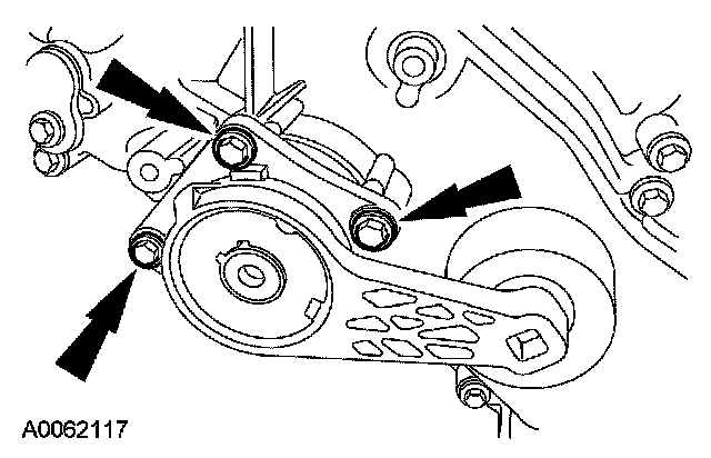 32. Remove the bolts and the accessory drive belt tensioner.