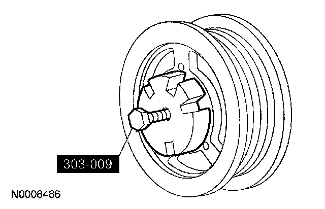 35. Remove and discard the crankshaft pulley bolt. Using the special tool, remove the crankshaft pulley.