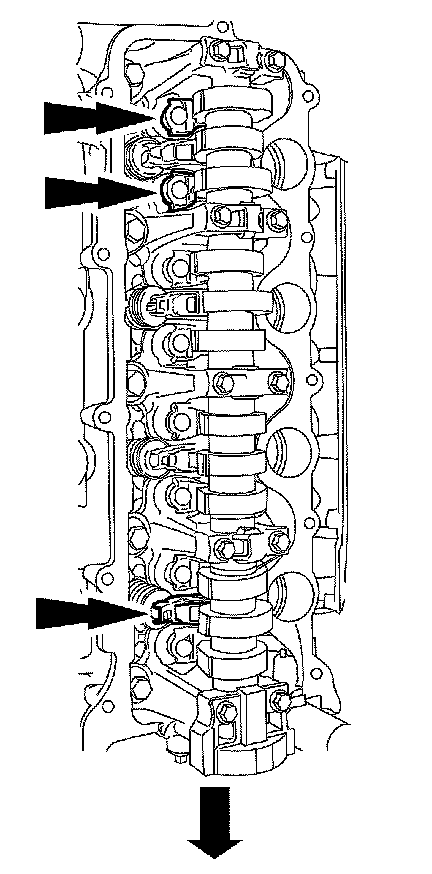 NOTE: The camshaft bearing caps must be installed in their original locations. Record camshaft bearing cap locations.