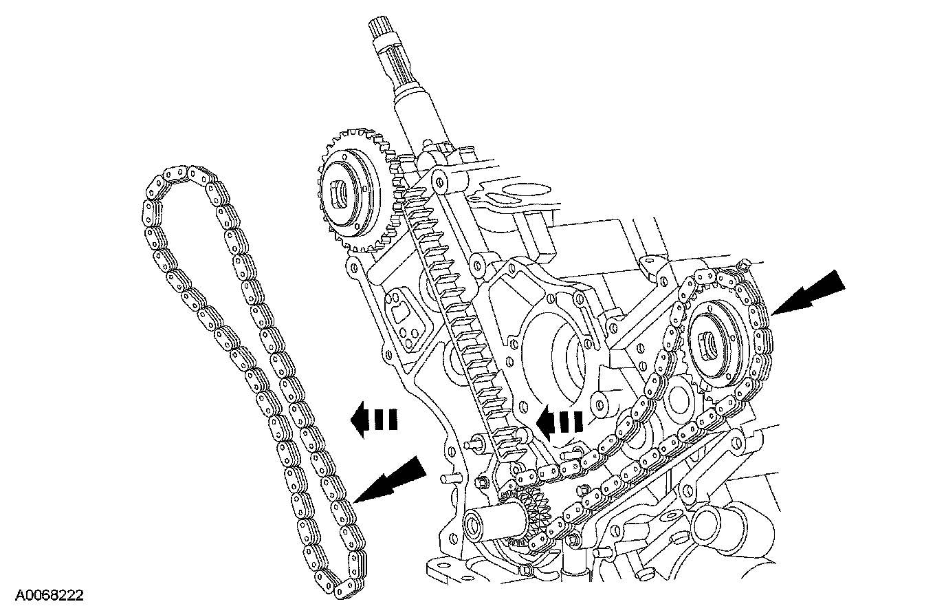 ^ Remove the LH timing chain and crankshaft sprocket.