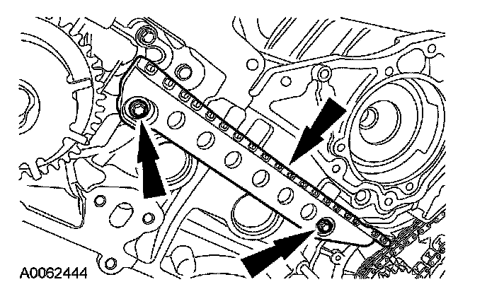 Remove the bolts, the LH timing chain tensioner and tensioner arm.