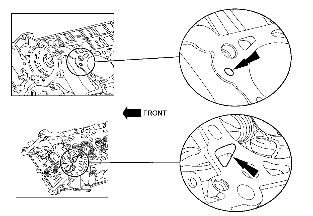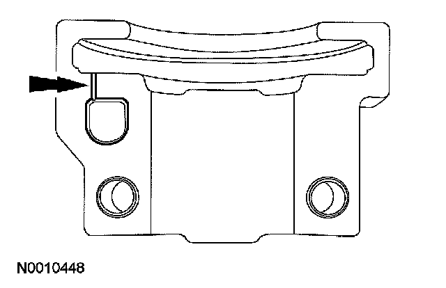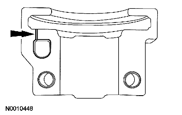 ^ The camshaft front thrust bearing cap contains an oil metering groove. Make sure the groove is free of foreign material.
