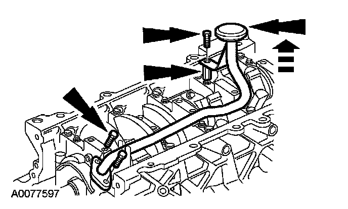 CAUTION: Place clean shop towels over exposed engine cavities. Carefully remove the towels so foreign material is not dropped into the engine.
