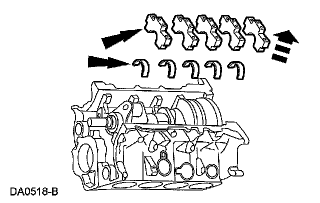 Remove only the 3 camshaft roller followers shown in the illustration from the LH cylinder head.