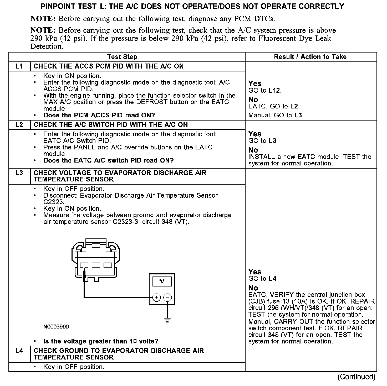 PINPOINT TEST L: THE A/C DOES NOT OPERATE/DOES NOT OPERATE CORRECTLYL1-L4: