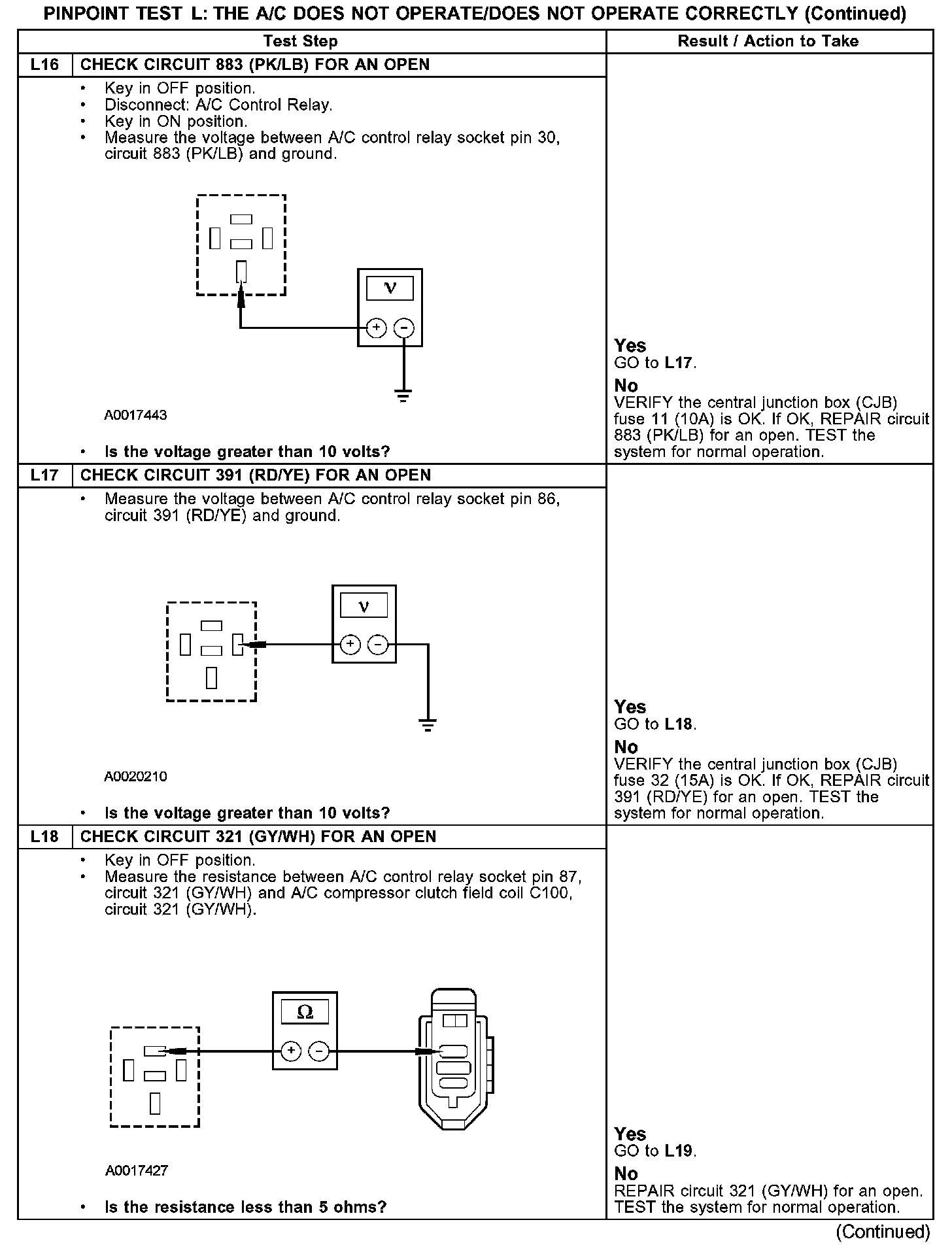 Test L: The A/C Does Not Operate/Does Not Operate Correctly