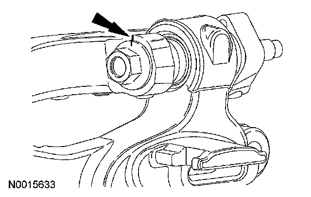 3. Mark a scribe line on the upper arm-to-wheel knuckle bolt head and upper arm.