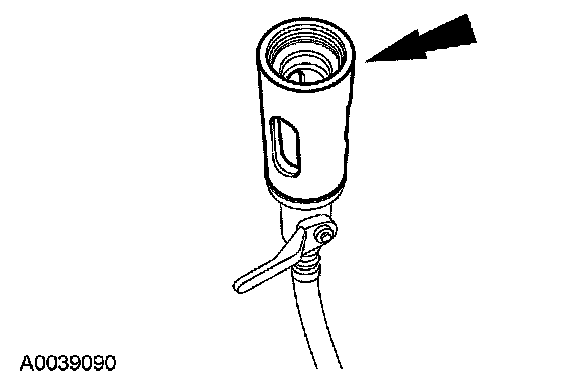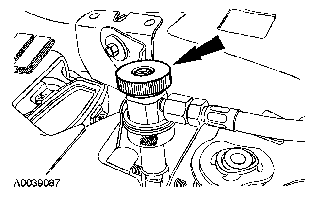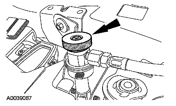 8. Remove the fluorescent dye injector from the low-pressure service gauge port valve and the R-134a A/C refrigerant service center or manifold gauge set.