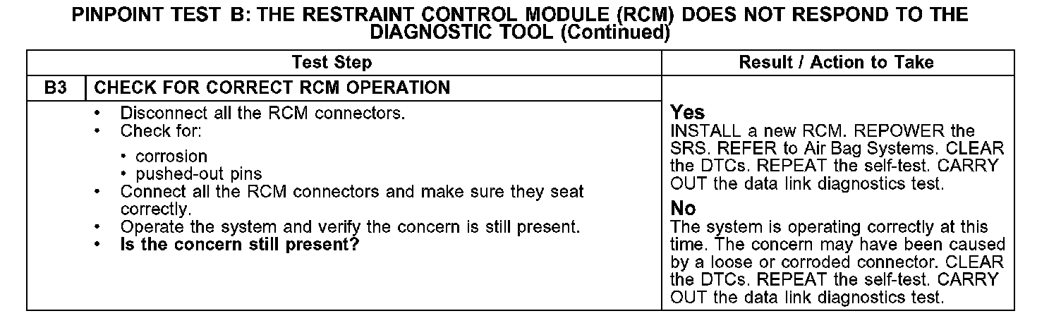 Test B: The Restraint Control Module (RCM) Does Not Respond to the Diagnostic Tool