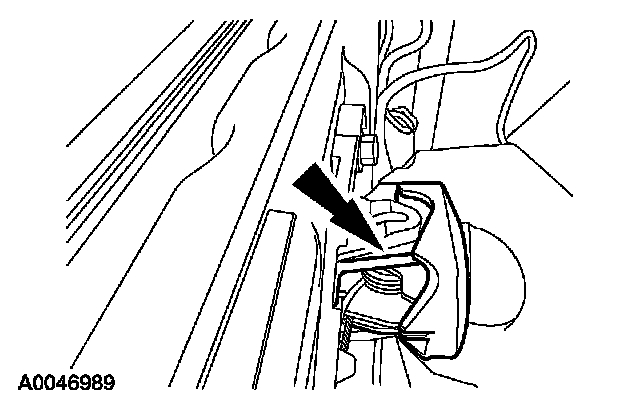 - Lift upward on the interior door handle retaining bracket and pivot the interior door handle out of the bracket.