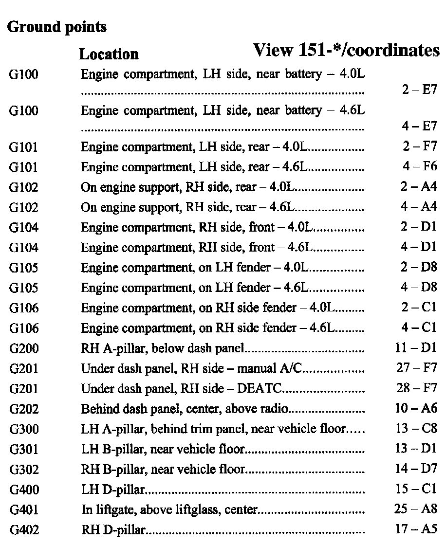 If a link on the Ground Location Index to a View is not provided, that means that the Ground and/or View in question does NOT apply to the vehicle model selected.