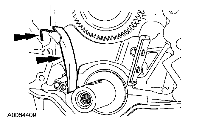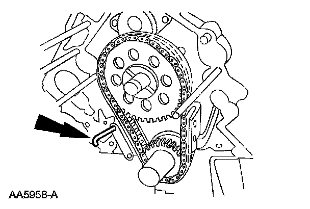 4. Compress and install a retaining pin to hold the timing chain tensioner.