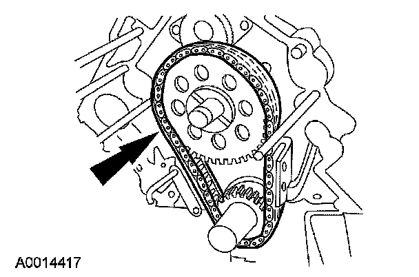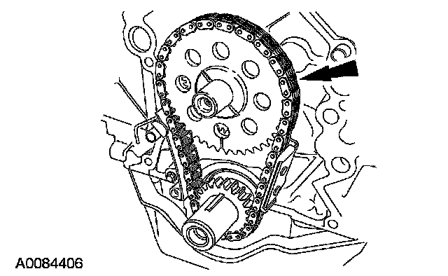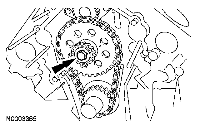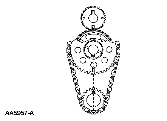 5. Remove the camshaft sprocket, the crankshaft sprocket and the timing chain as an assembly.