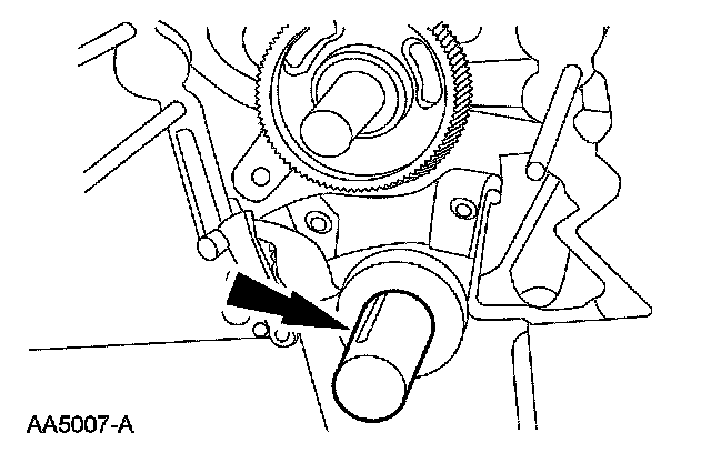 4. Turn the camshaft sprocket so that the timing mark is at the 12 o'clock position and is lined up with the timing mark on the balance shaft at the 6 o'clock position.