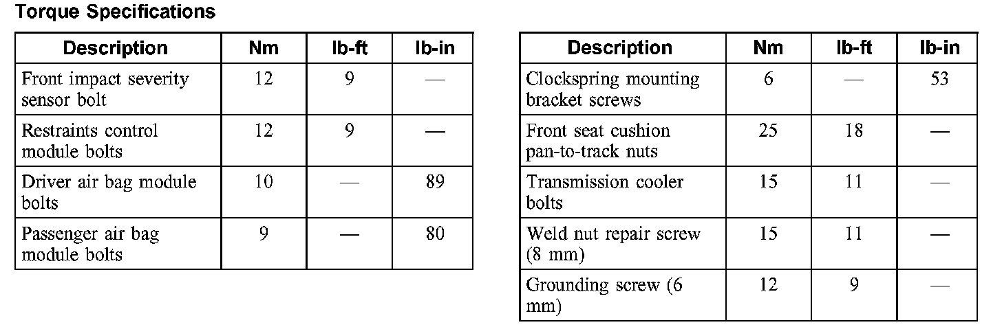 Torque Specifications: