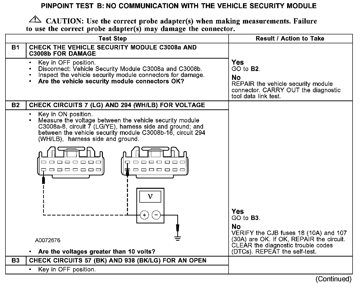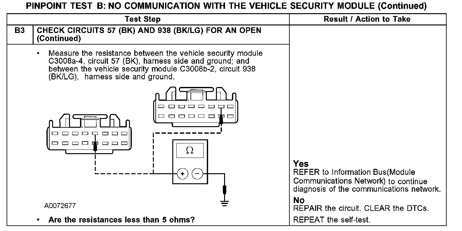 PINPOINT TEST B: NO COMMUNICATION WITH THE VEHICLE SECURITY MODULEB1-B3: