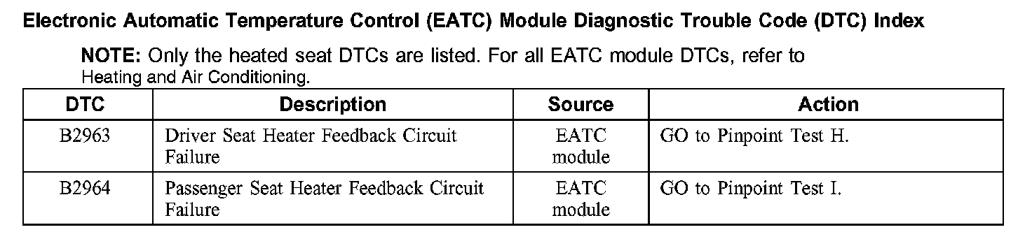 Electronic Automatic Temperature Control (EATC) Module Diagnostic Trouble Code (DTC) Index