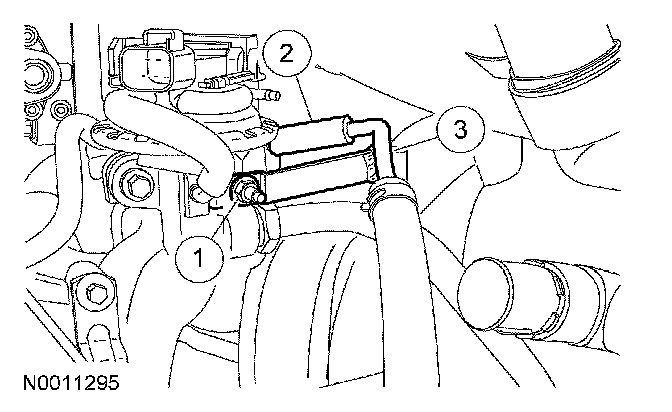 5. Disconnect the exhaust manifold-to-EGR system module tube from the EGR system module.