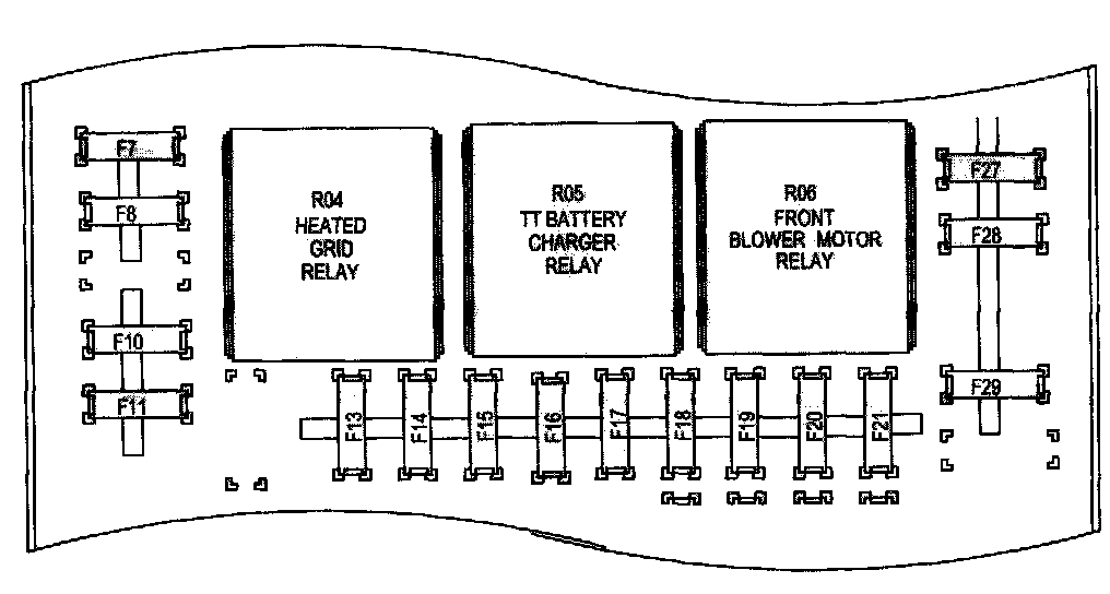 Fuse and Relay Information contains a view of the fuse-/relay box in which all fuses and relays are identified. Fuse and relay numbering and naming follow the indication of the fuse panel cover.